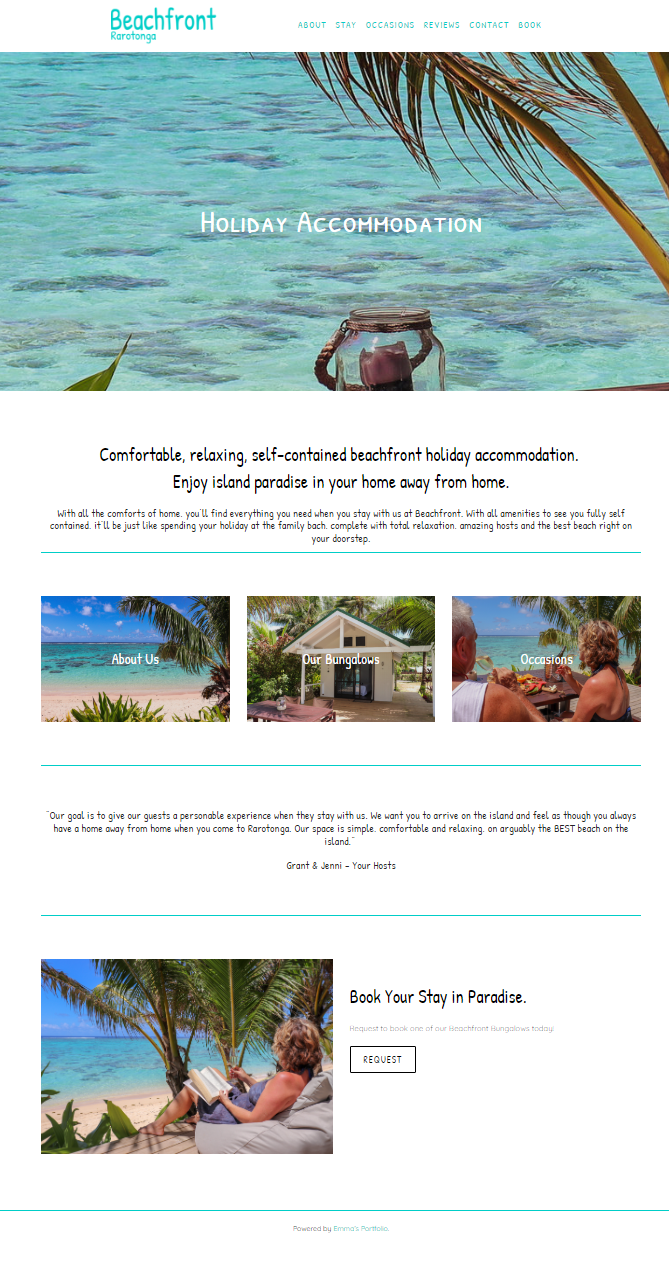 Grant and Jenni worked with me while I was living in Rarotonga. They were wanting to build their holiday accommodation business and increase their bookings directly, rather than using Air BnB and other accommodation providers. They wanted a very simple, friendly brand that was bright and vibrant, representing the colour of the lagoon on their backdoor.
